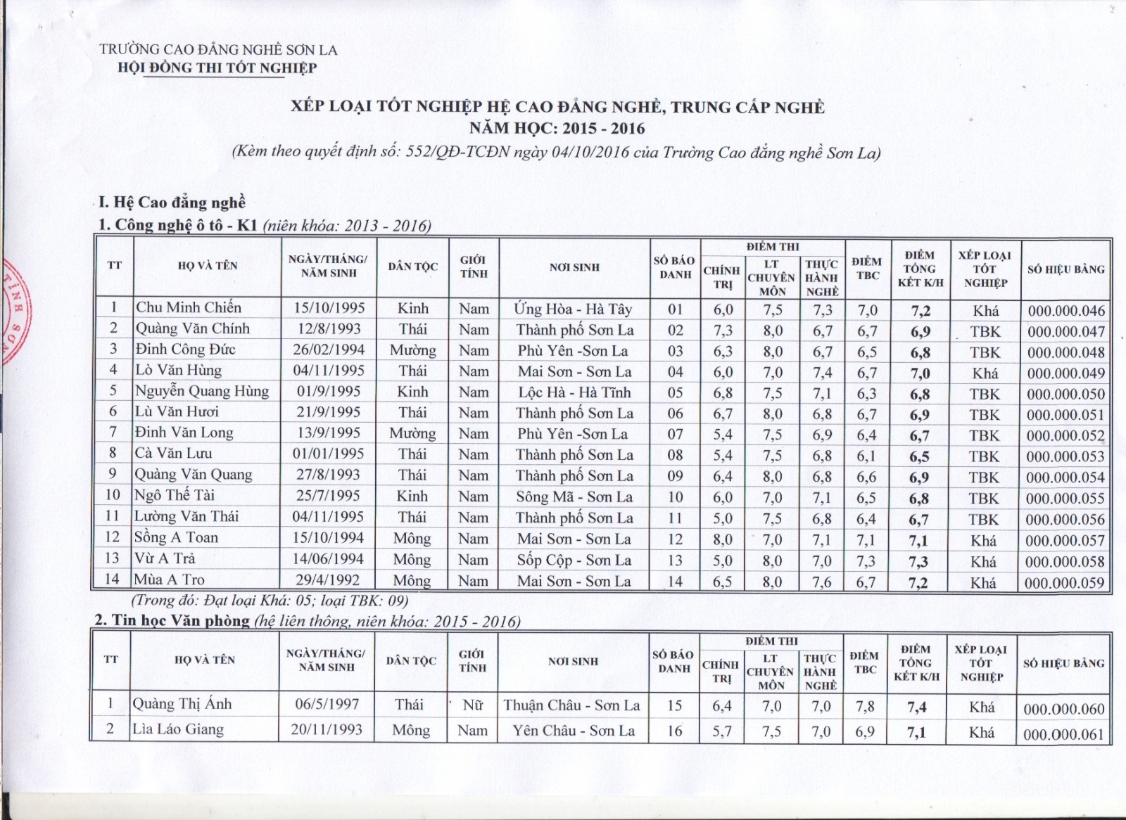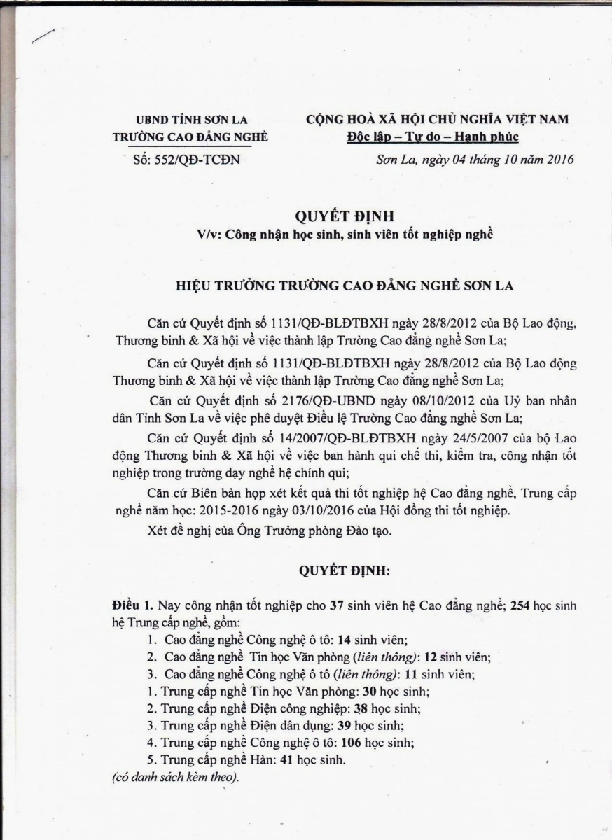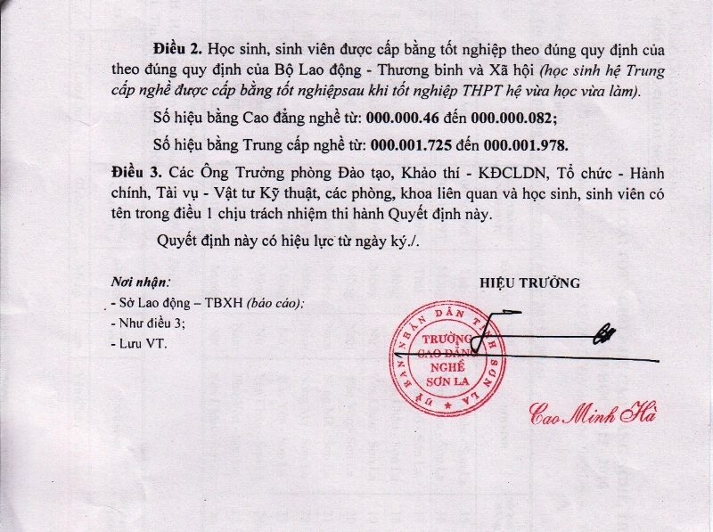 TRƯỜNG CAO ĐẲNG KỸ THUẬT CÔNG NGHỆ SƠN LA