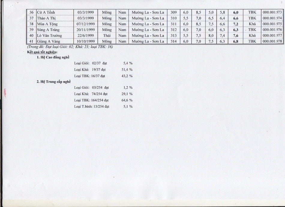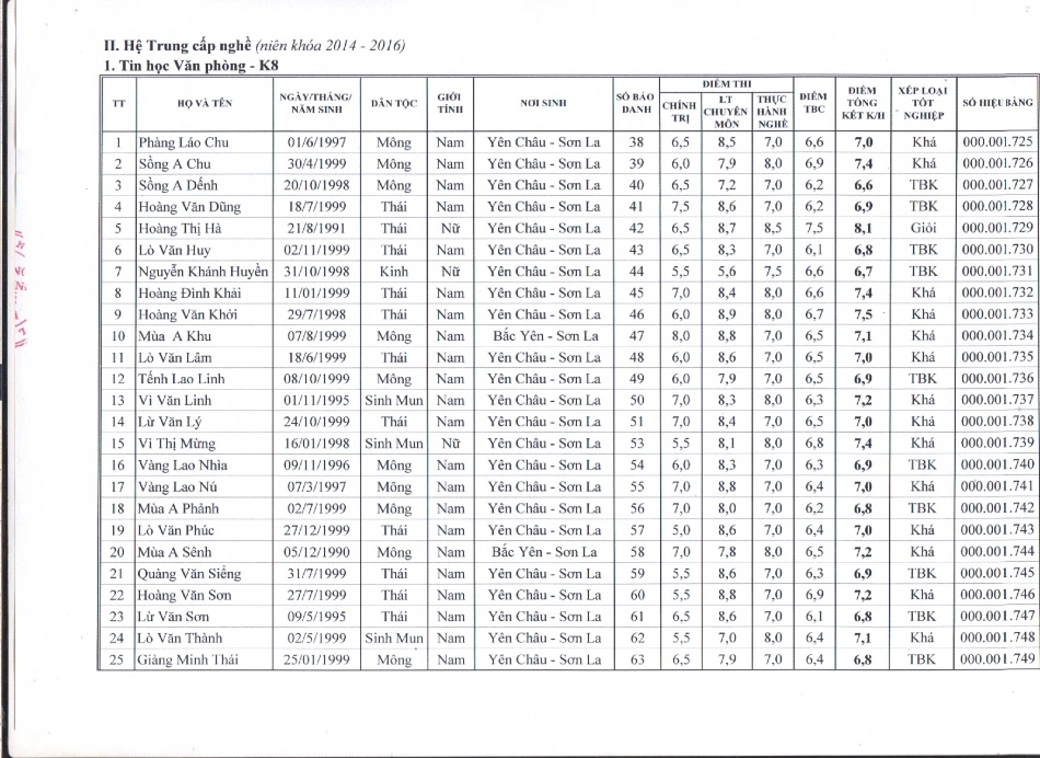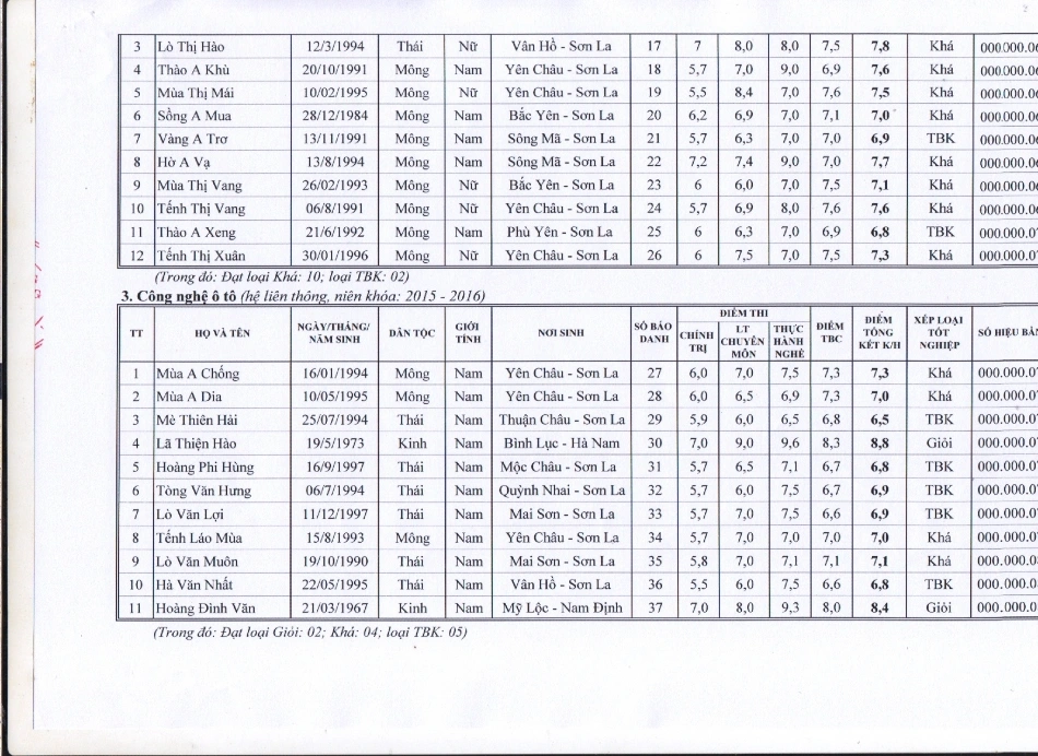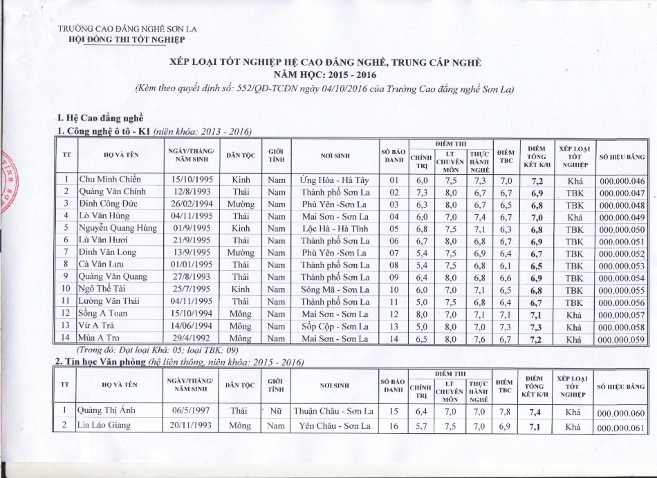 Kết quả tốt nghiệp năm 2016
