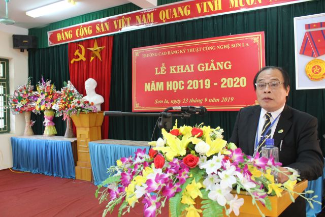 Phát biểu khai giảng năm học mới, đồng chí - Bí thư Đảng ủy, Hiệu trưởng nhà trường đã khái quát những kết quả mà Nhà trường đã đạt được trong năm học 2018 - 2019 và triển khai những nhiệm vụ, giải pháp trọng tâm mà toàn thể lãnh đạo, cán bộ, giảng viên, giáo viên và học sinh, sinh viên Nhà trường cần nỗ lực thực hiện trong năm học mới.