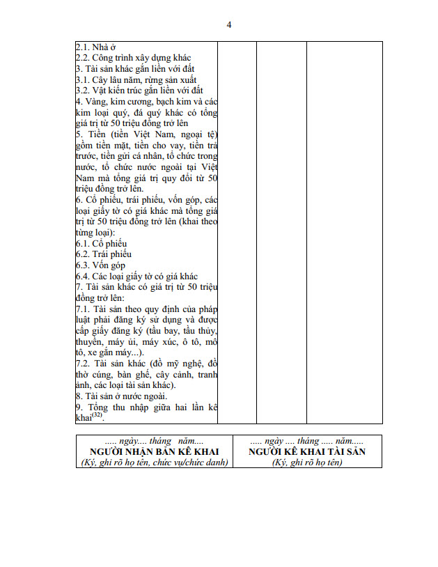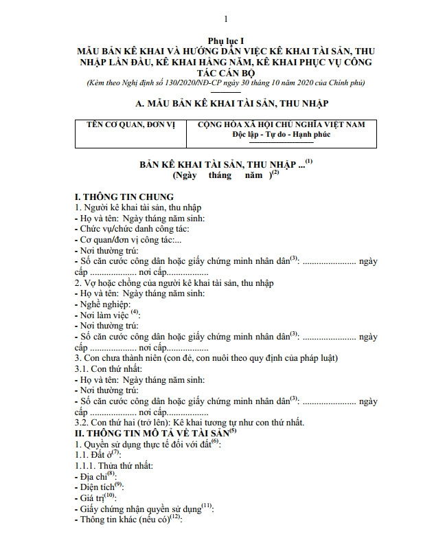 Mẫu bản kê khai và hướng dẫn việc kê khai tìa sản