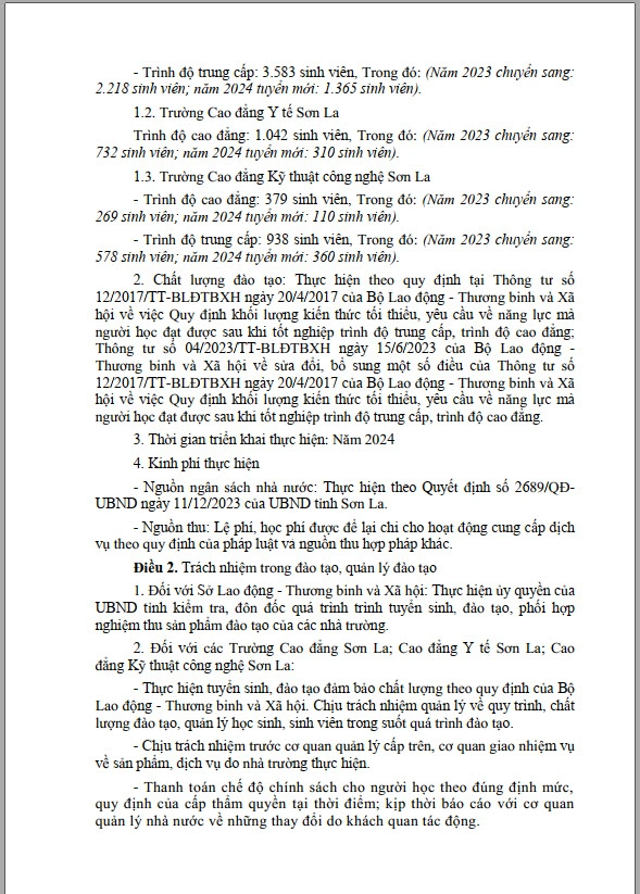 Quyết định 724 về việc giao nhiệm vụ cung cấp dịch vụ sự nghiệp công sử dụng ngân sách nhà nước cho các trường Cao đẳng Sơn La, Cao đẳng Y tế Sơn La, Cao đẳng Kỹ thuật công nghệ Sơn La năm 2024