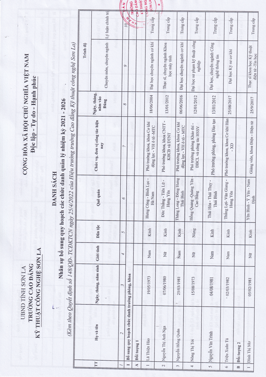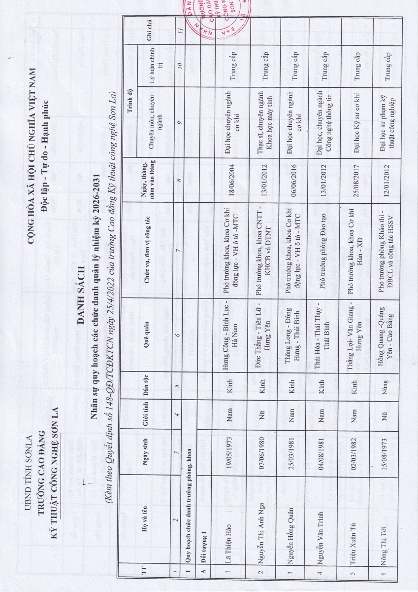 TRƯỜNG CAO ĐẲNG KỸ THUẬT CÔNG NGHỆ SƠN LA