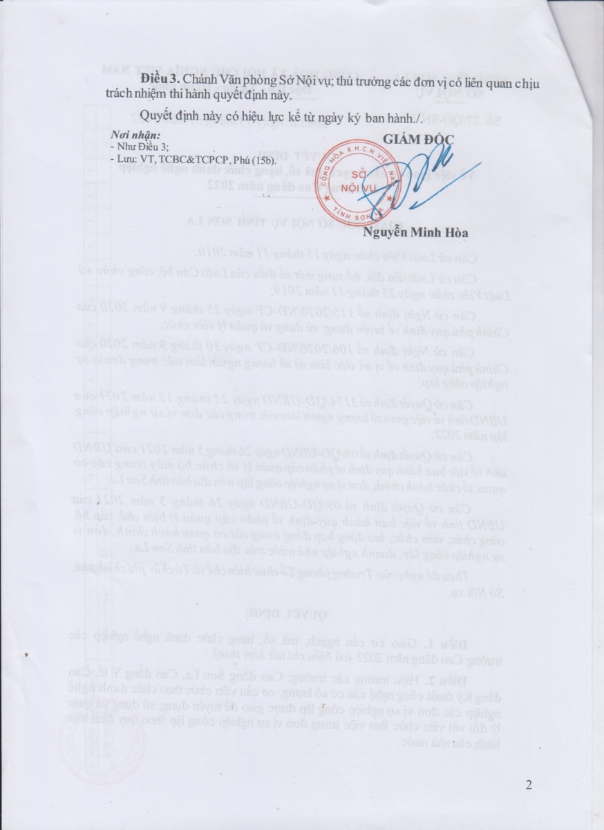 TRƯỜNG CAO ĐẲNG KỸ THUẬT CÔNG NGHỆ SƠN LA