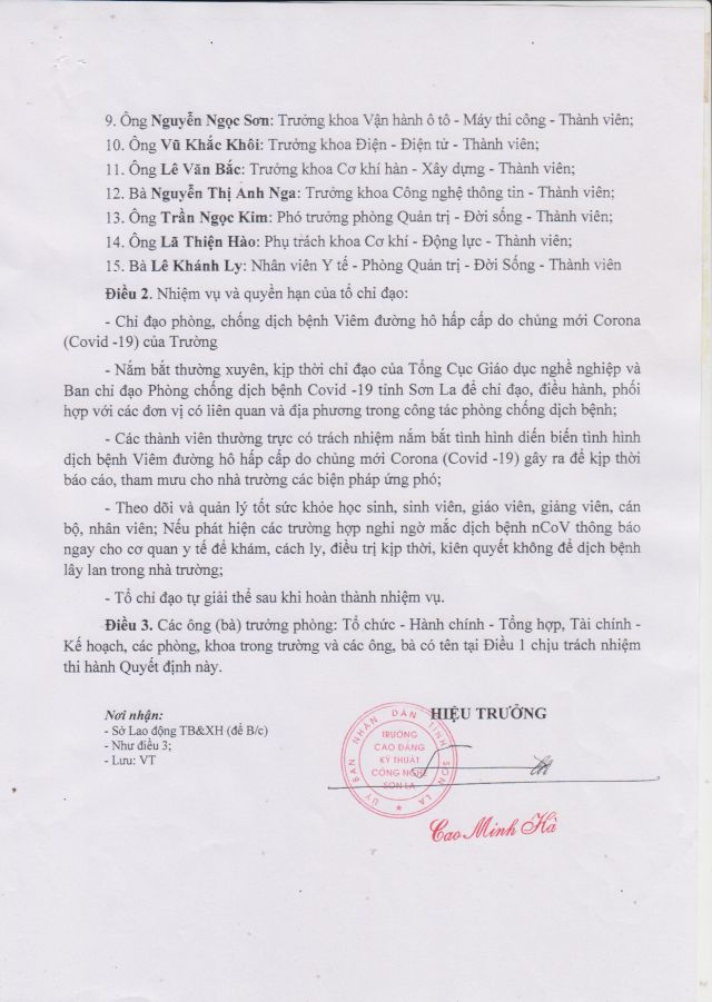 TRƯỜNG CAO ĐẲNG KỸ THUẬT CÔNG NGHỆ SƠN LA