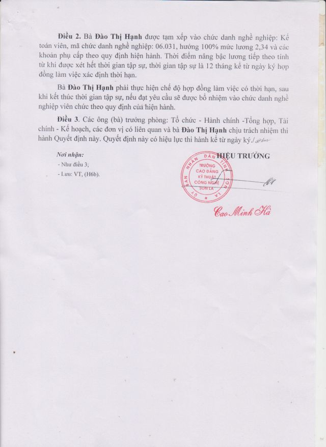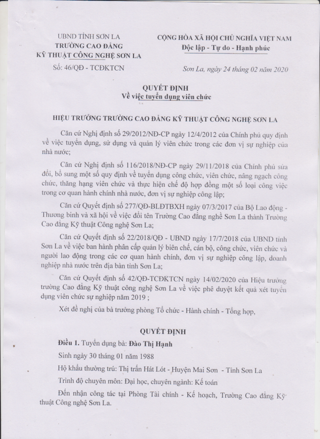 TRƯỜNG CAO ĐẲNG KỸ THUẬT CÔNG NGHỆ SƠN LA