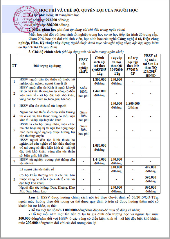 TRƯỜNG CAO ĐẲNG KỸ THUẬT CÔNG NGHỆ SƠN LA