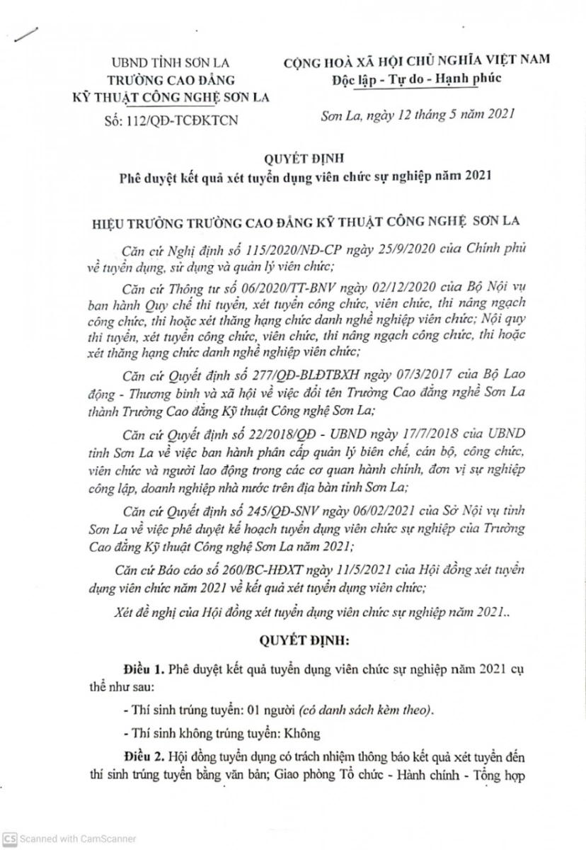 Thông báo quyết định phê duyệt kết quả xét tuyển viên chức năm 2021