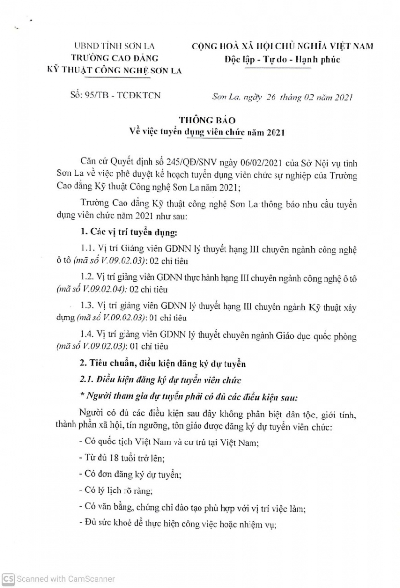 Công văn mời báo giá thu mua phế liệu các loại của trường Cao đẳng Kỹ thuật công nghệ Sơn La