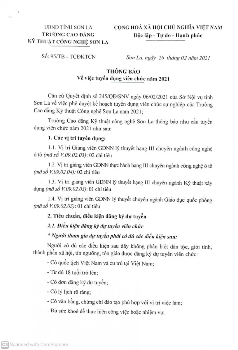Thông báo tuyển dụng viên chức năm 2021