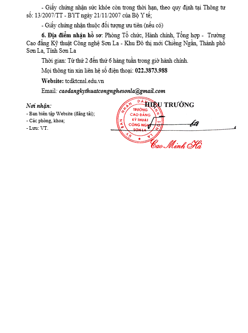 TRƯỜNG CAO ĐẲNG KỸ THUẬT CÔNG NGHỆ SƠN LA