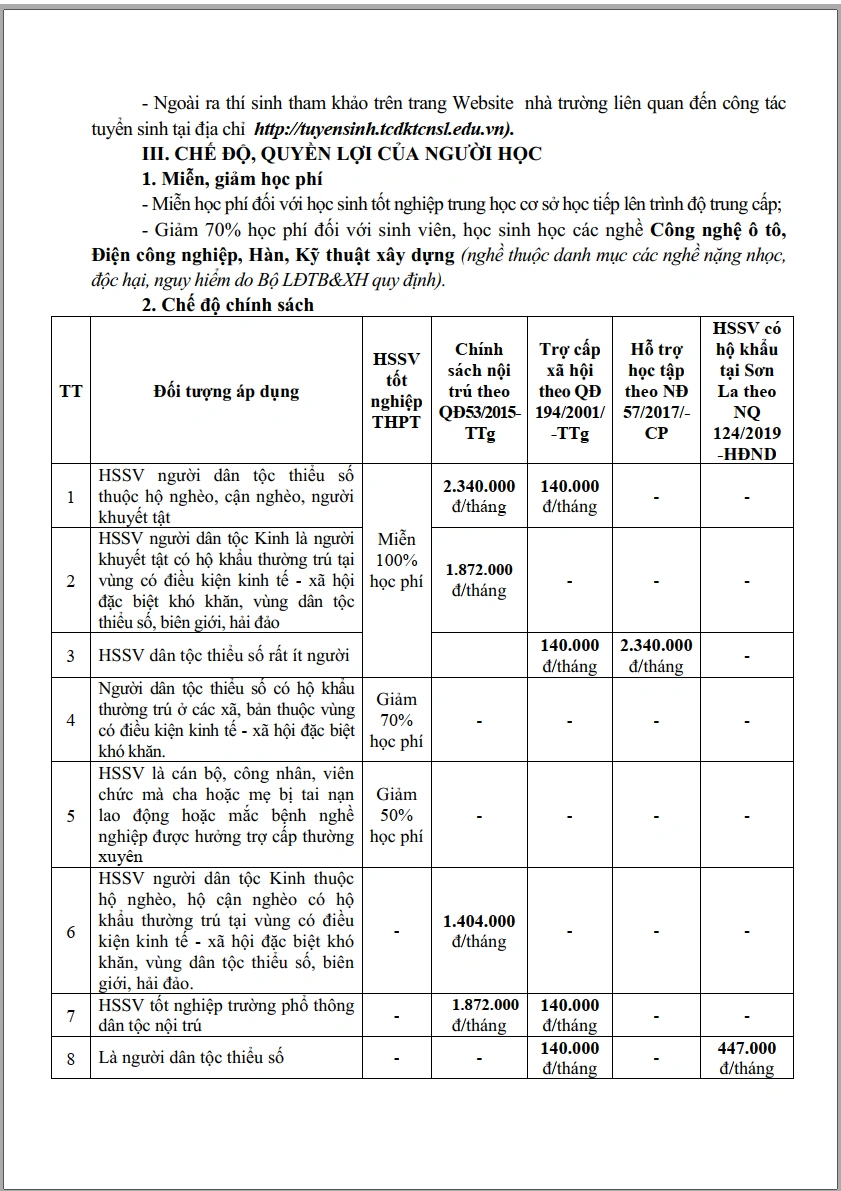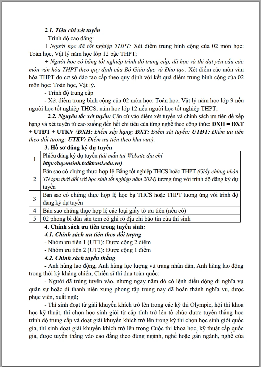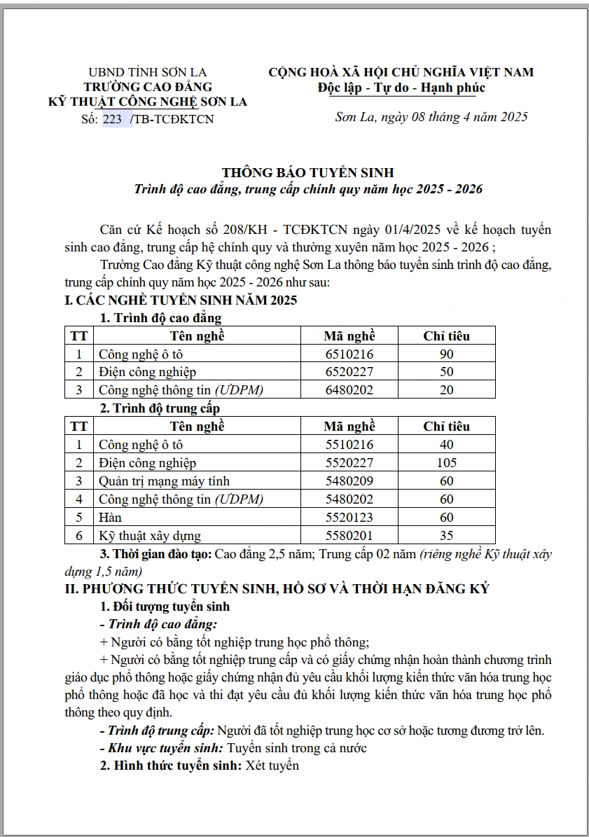 Thông báo tuyển sinh hệ cao đẳng, trung cấp năm học 2025 - 2026
