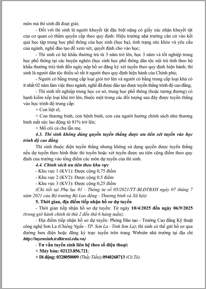 TRƯỜNG CAO ĐẲNG KỸ THUẬT CÔNG NGHỆ SƠN LA