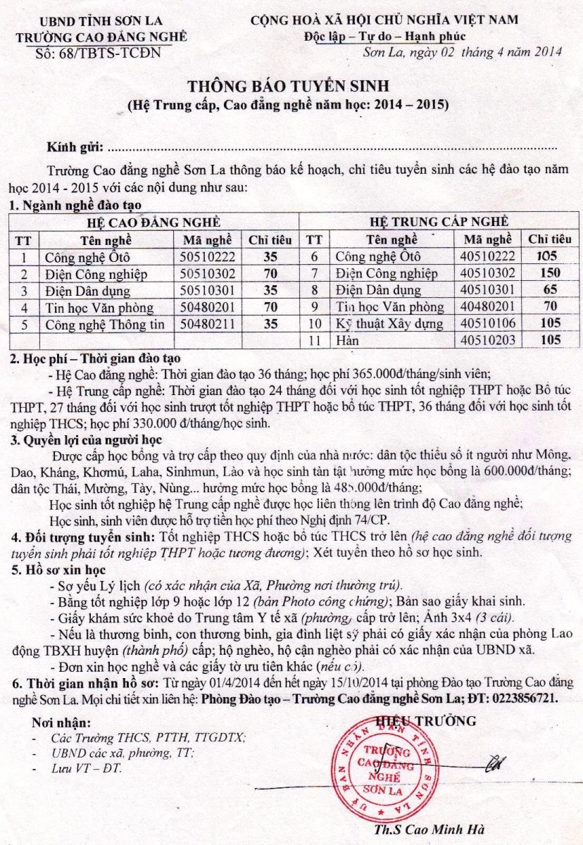 TRƯỜNG CAO ĐẲNG KỸ THUẬT CÔNG NGHỆ SƠN LA