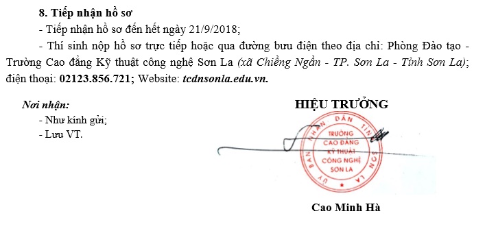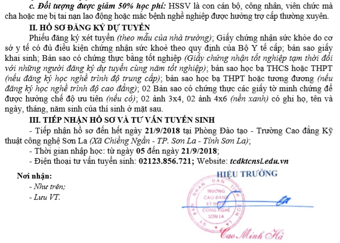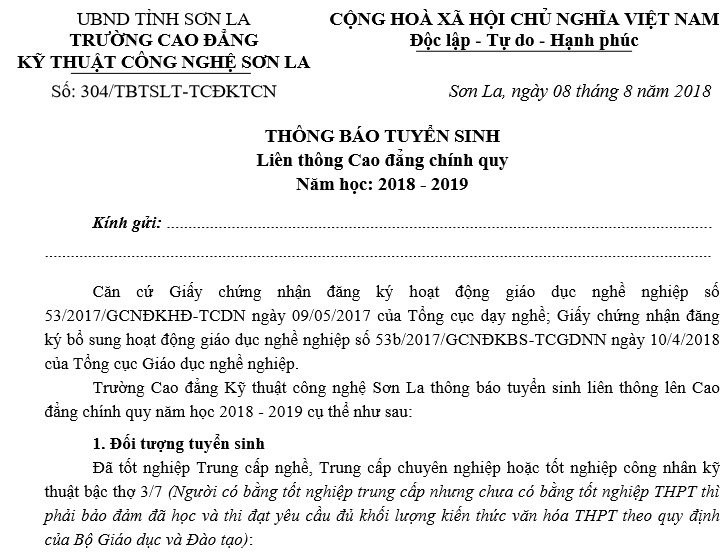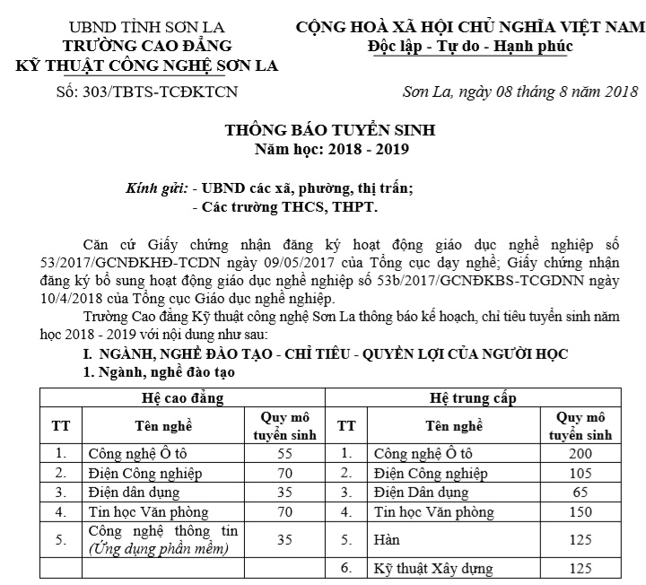TRƯỜNG CAO ĐẲNG KỸ THUẬT CÔNG NGHỆ SƠN LA