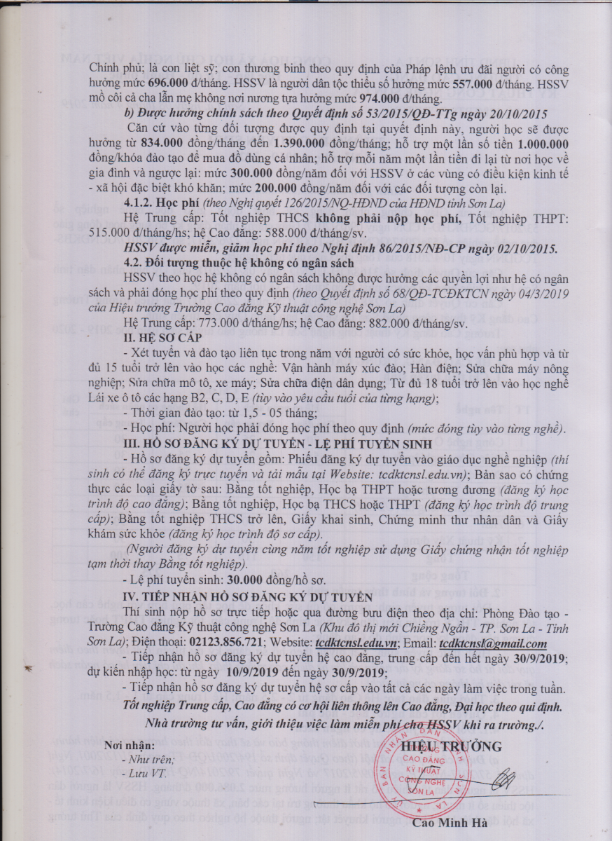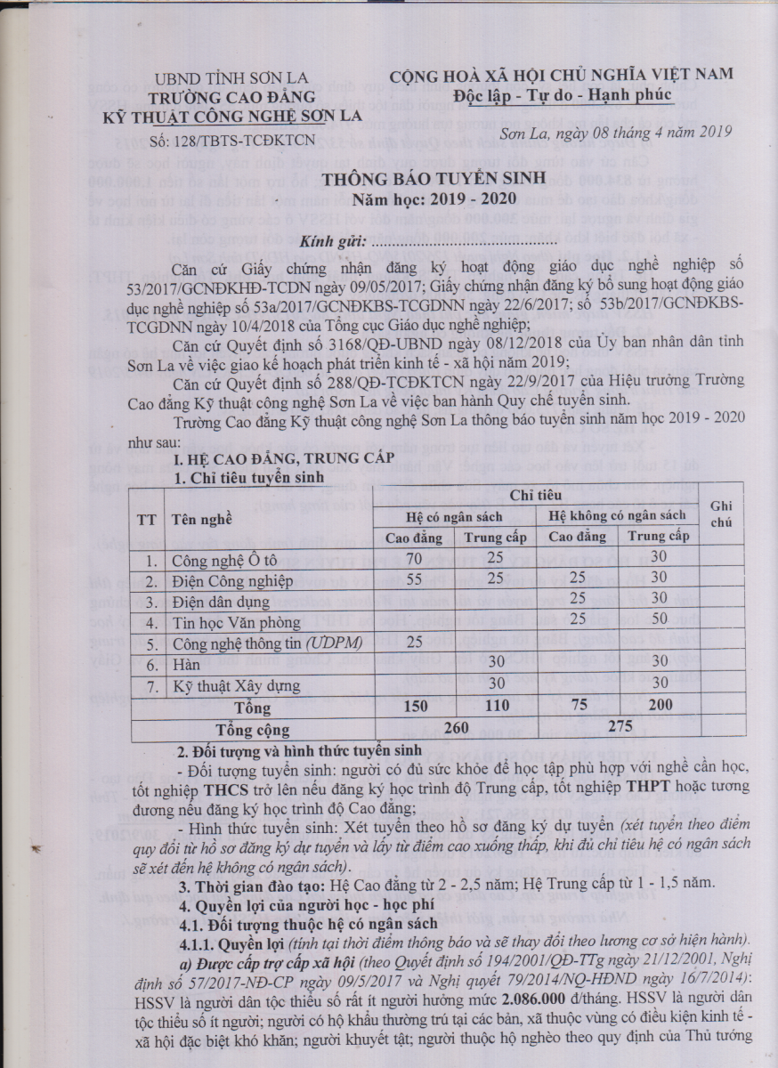 TRƯỜNG CAO ĐẲNG KỸ THUẬT CÔNG NGHỆ SƠN LA