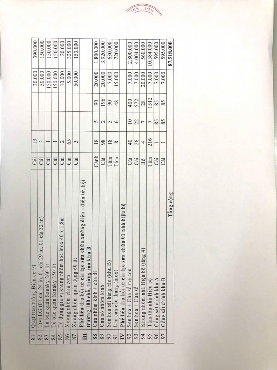 Thông báo Về việc bán thanh lý tài sản, công cụ, dụng cụ, phế liệu theo hình thức niêm yết giá