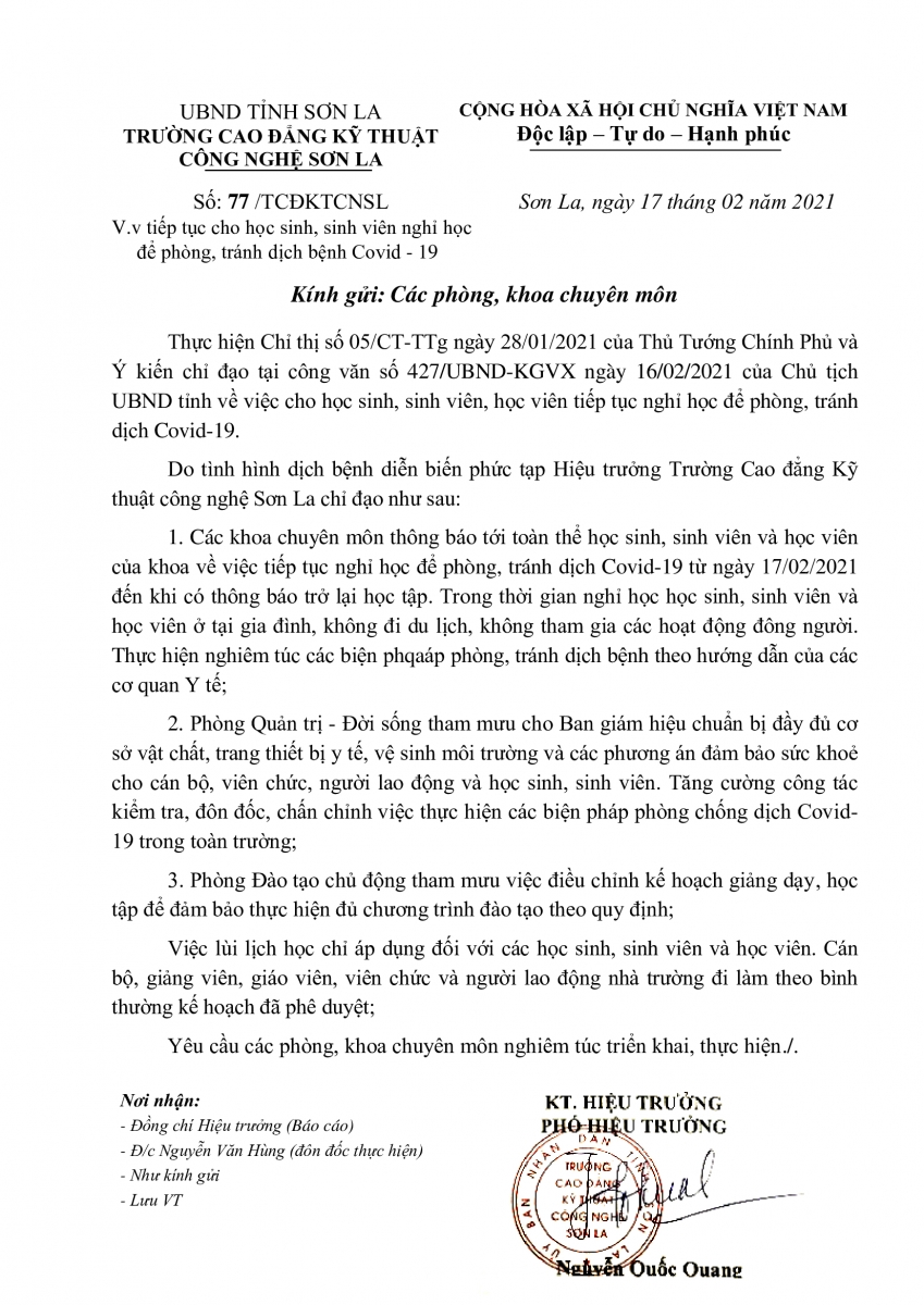 TRƯỜNG CAO ĐẲNG KỸ THUẬT CÔNG NGHỆ SƠN LA