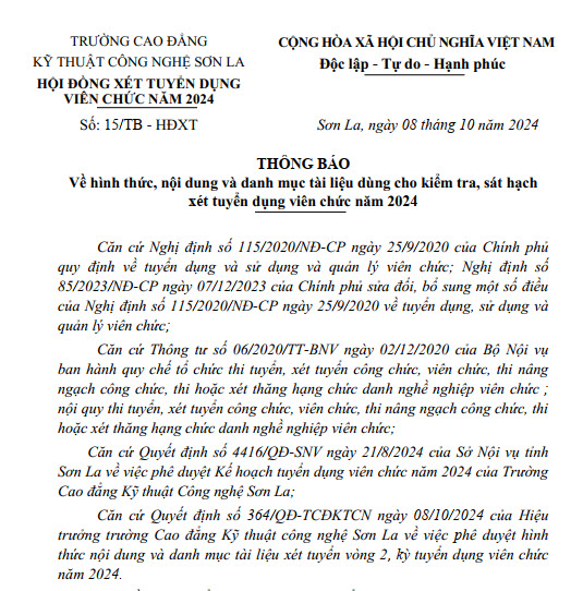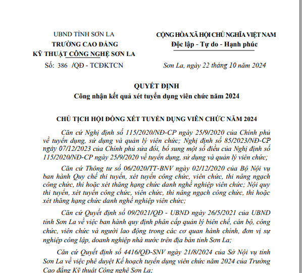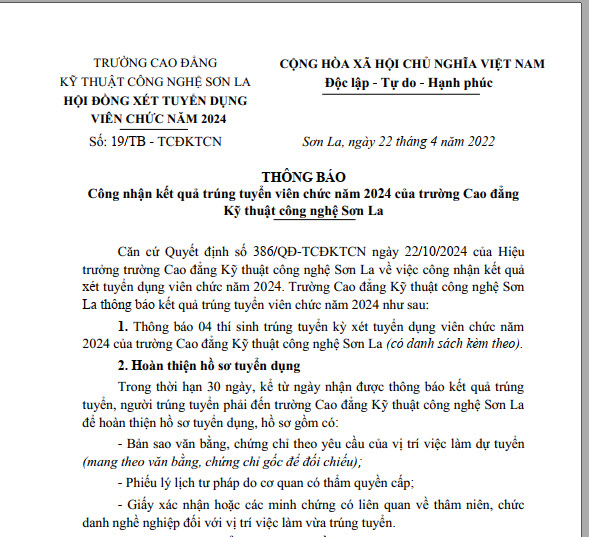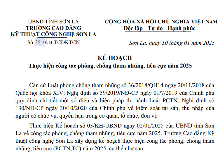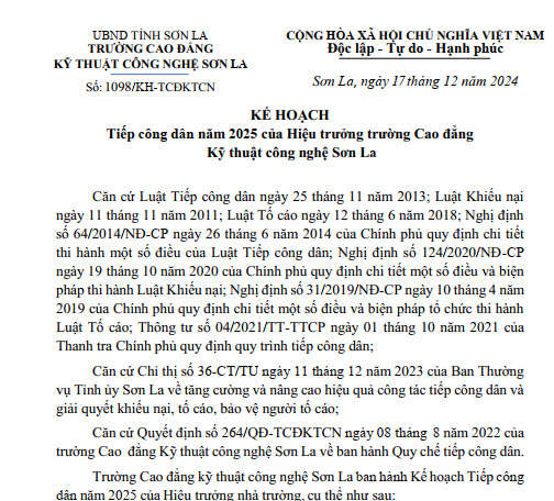 Căn cứ Kế hoạch số 219/KH-TCĐKTCN ngày 28/3/2024 của Trường Cao đẳng Kỹ thuật công nghệ Sơn La về việc giúp đỡ Xã Tà Hộc năm 2024
