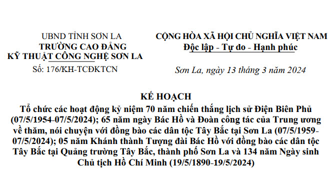 Thực hiện Chương trình công tác Đoàn và phong trào thanh thiếu nhi năm 2024; Kế hoạch số 31-KH/ĐTN ngày 16/02/2024 của Ban Thường vụ Đoàn Khối, Kế hoạch số 31-KH/ĐTN ngày 05/3/2024 của Đoàn trường; Ngày 26/3/2024 Đoàn trường Cao đẳng Kỹ thuật công nghệ Sơn La tổ chức Giao lưu văn nghệ, thể thao chào mừng kỉ niệm 93 năm ngày thành lập Đoàn Thanh niên Cộng sản Hồ Chí Minh.