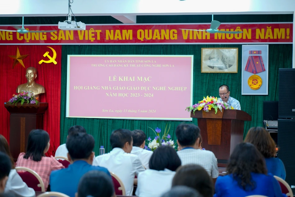 Trong 5 ngày, từ ngày 13/5/2024 - 17/5/2024 trường Cao đẳng Kỹ thuật công nghệ Sơn La long trọng tổ chức Hội giảng Nhà giáo giáo dục nghề nghiệp năm học 2023 – 2024. Đây là một trong những hoạt động chuyên môn thường niên của nhà trường, tham dự có đồngchí Nguyễn Văn Hùng – Bí thư đảng ủy, Hiệu trường nhà trường; các đồng chí trong BCH Đảng bộ, Ban Giám hiệu, Ban giám khảo, lãnh đạo các phòng, khoa chuyên môn và các thầy cô giáo tham dự hội thi.