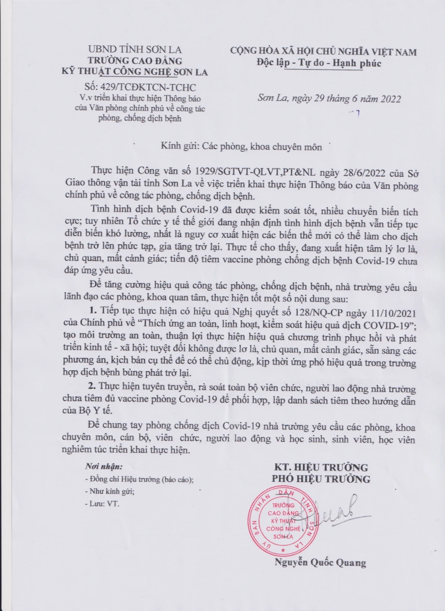TRƯỜNG CAO ĐẲNG KỸ THUẬT CÔNG NGHỆ SƠN LA