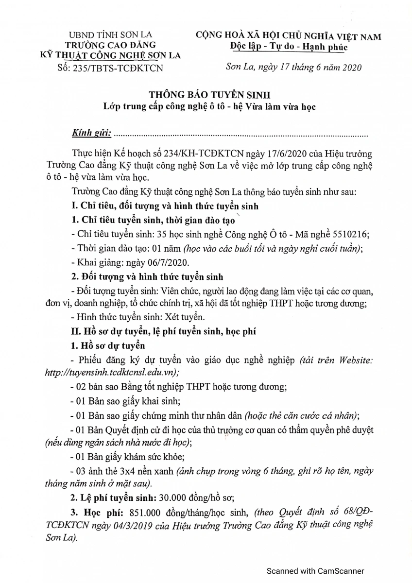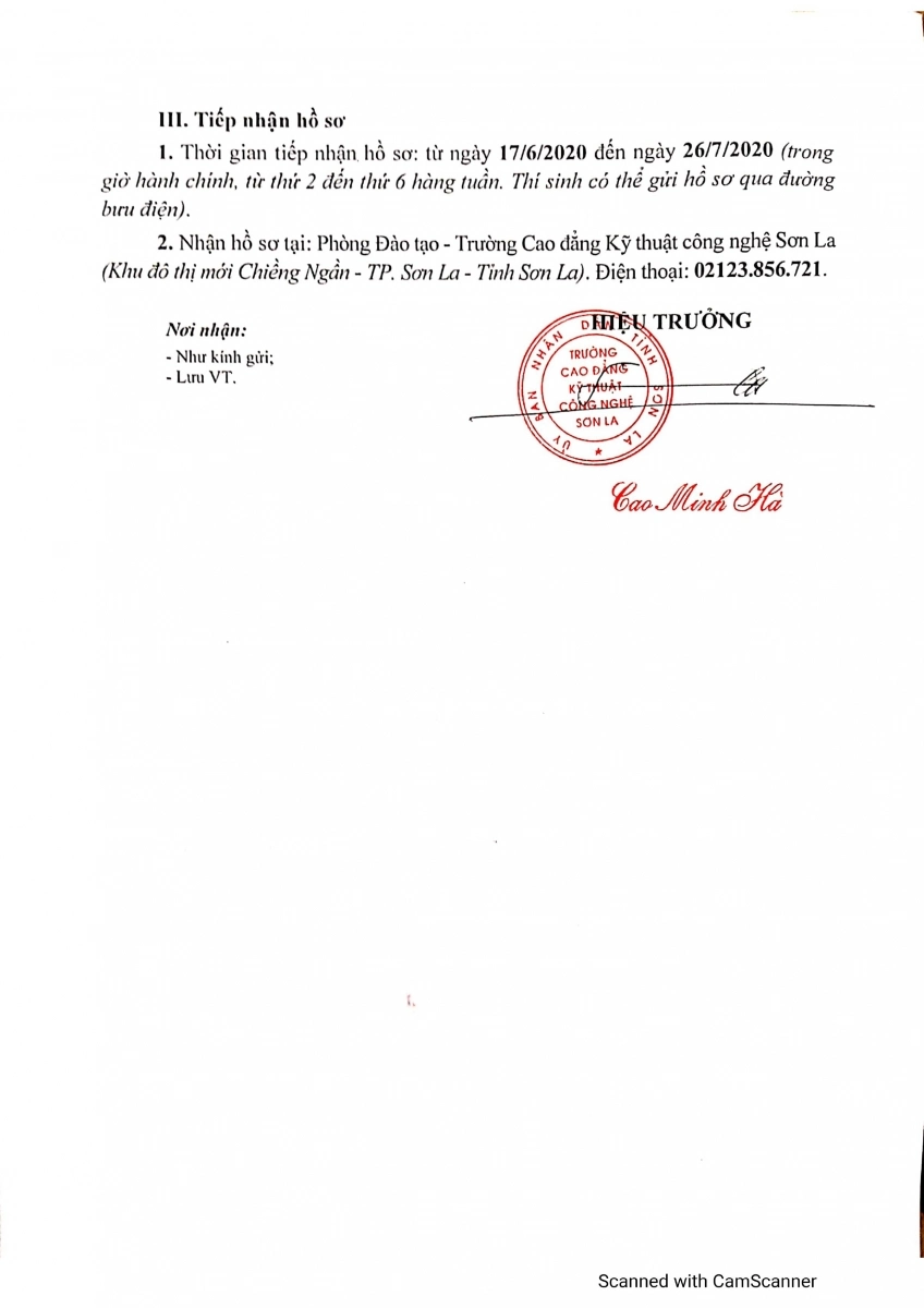 TRƯỜNG CAO ĐẲNG KỸ THUẬT CÔNG NGHỆ SƠN LA