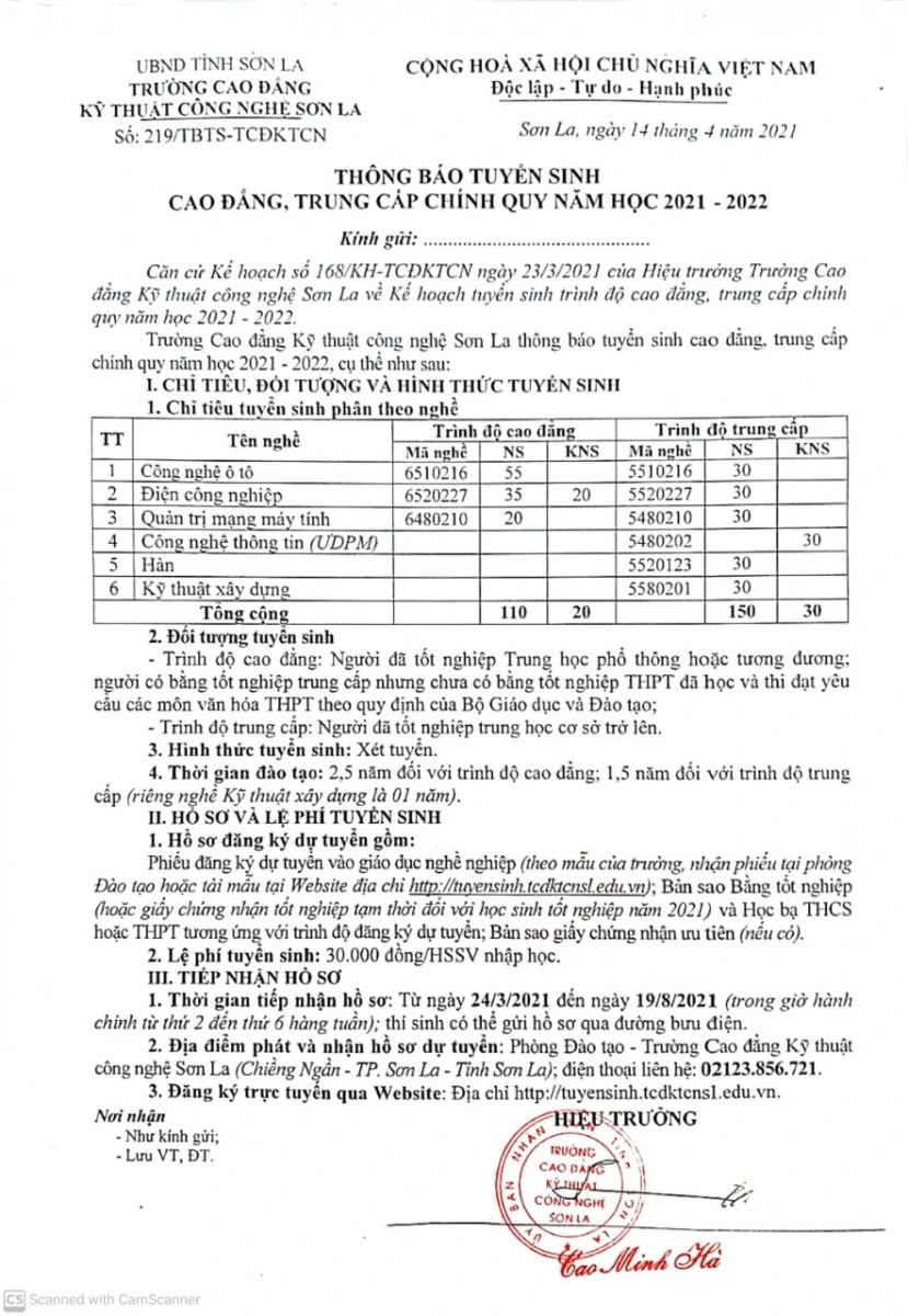 TRƯỜNG CAO ĐẲNG KỸ THUẬT CÔNG NGHỆ SƠN LA